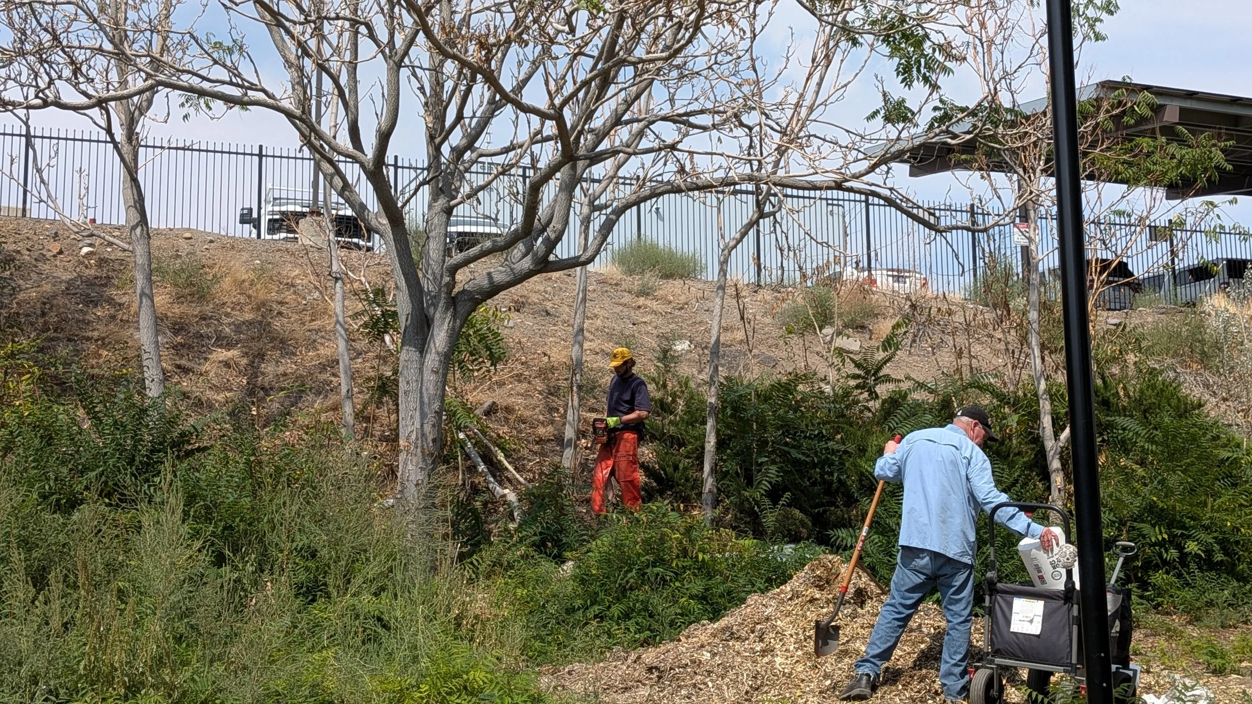 These native trees are replacing problematic invasive species. Tree of Heaven and Siberian Elm were both introduced to the Truckee Meadows from Asia as early as the 1800’s. They were brought over as ornamental trees that grow well in poor soils and harsh temperatures. Much too well, it was soon realized. These trees grew and reproduced extremely quickly - with a single Tree of Heaven distributing up to 300,000 seeds each year - crowding out native species that are essential to our local environment while causing infrastructure damage through their extensive root systems. Once established, these invasives are very difficult to remove. Guetano and the Workforce crew begin treatment by girdling them - then return months later to dismantle the dead trees with chainsaws.