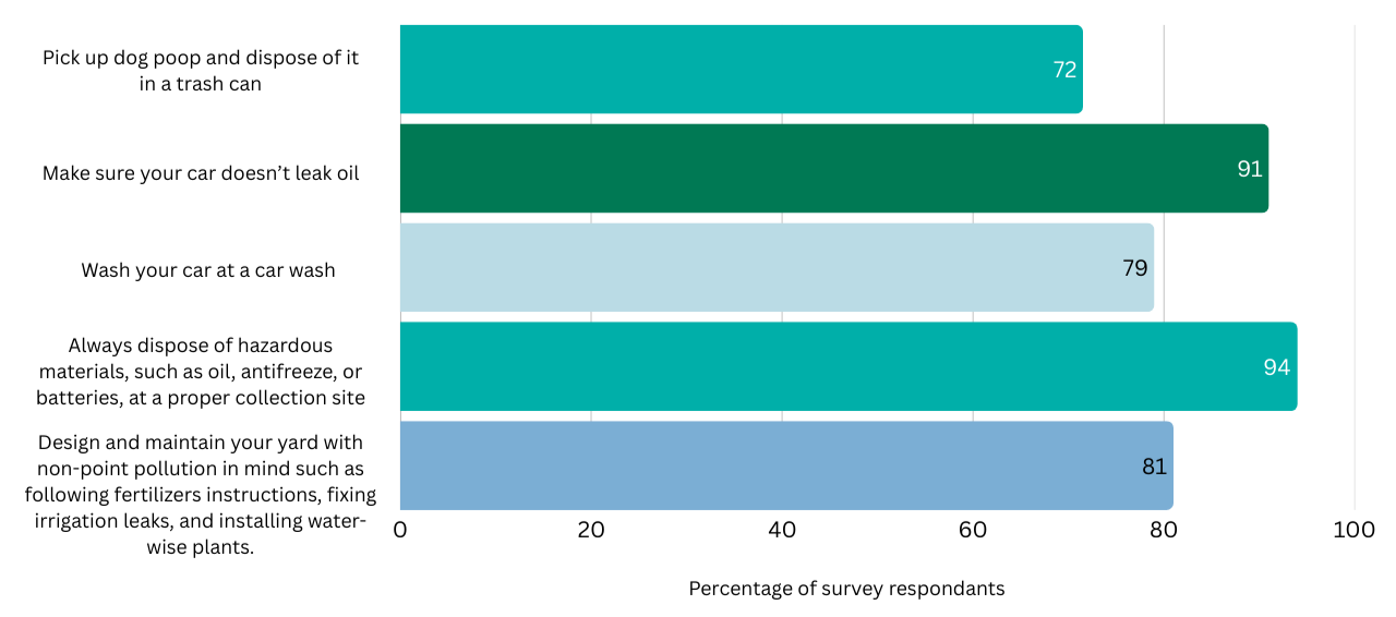 The majority of community members are familiar with non-point source pollution, or the idea that while some pollution comes from a central source (like a power plant), smaller pollutants come from many places – and rainwater can flush them down storm drains and into local waterways. These non-point source pollutants add up quickly! Many of you are already taking action to reduce nonpoint source pollution in your daily lives. Check out the chart below to see how your neighbors are protecting the Truckee River – and how you can make a difference.