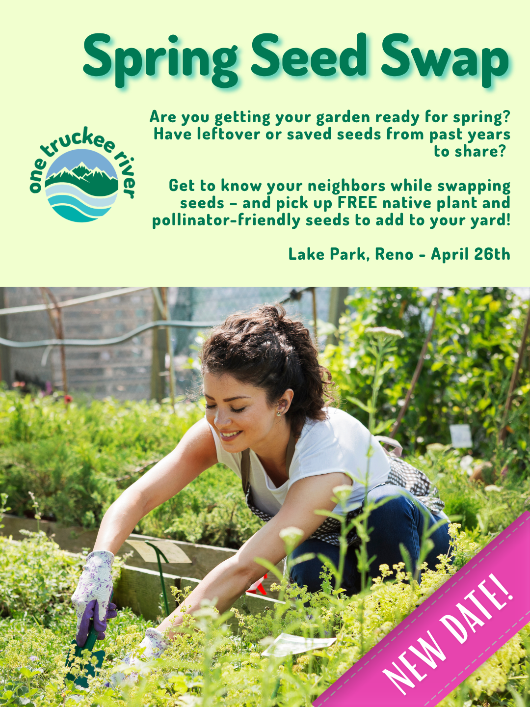 Join One Truckee River in Lake Park to exchange seeds and gardening tips with community. Whether you’re a flower-nourisher or veggie-cultivator, you’re welcome to bring any extra seeds sitting idle around your home. Or, just bring yourself if you’re new to gardening and don’t have seeds to exchange just yet! One Truckee River will be giving away a selection of Northern Nevada native plant seeds and pollinator-friendly seeds at the swap – varieties that are well adapted to our local climate, low-maintenance to grow, and protect the Truckee River by preventing runoff.