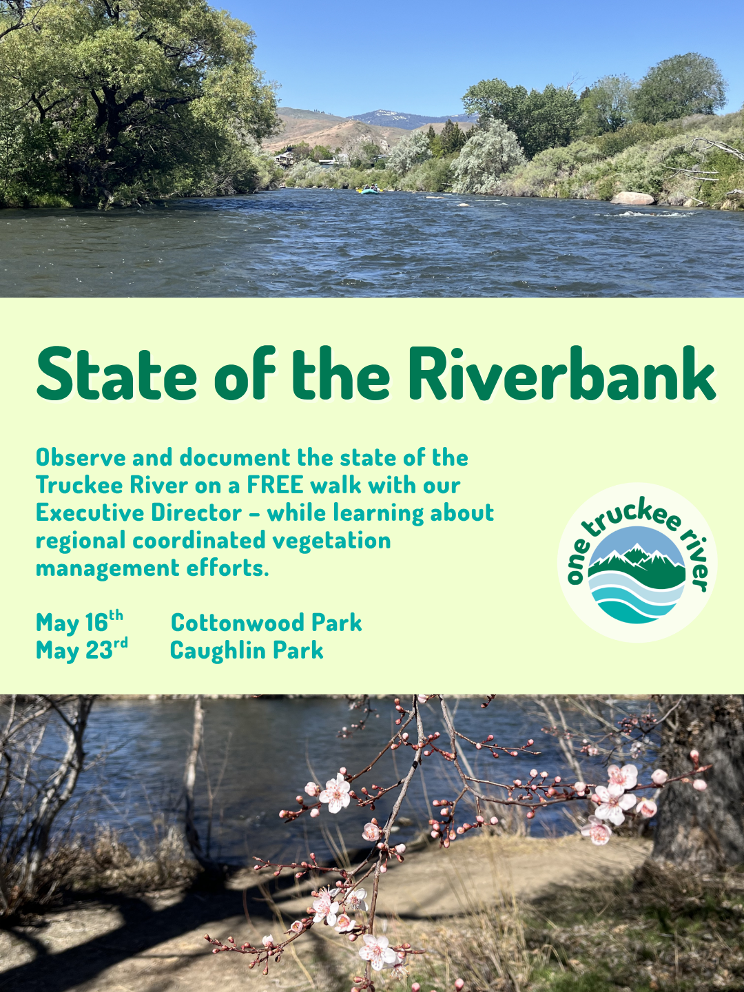 Join Iris Jehle-Peppard, One Truckee River’s Executive Director, for a walk along the Truckee River Path. Together, we’ll observe and document the state of the river while learning about regional coordinated vegetation management efforts.
